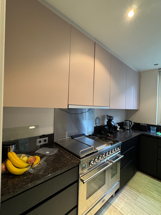 Deze keuken hebben wij gewrapt in de kleuren S140 Pure black en S207 Balm Rosé
